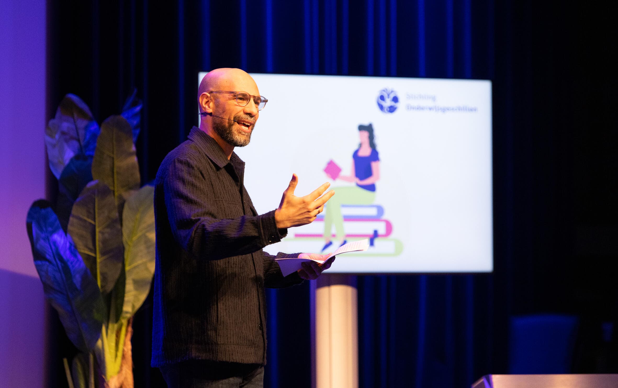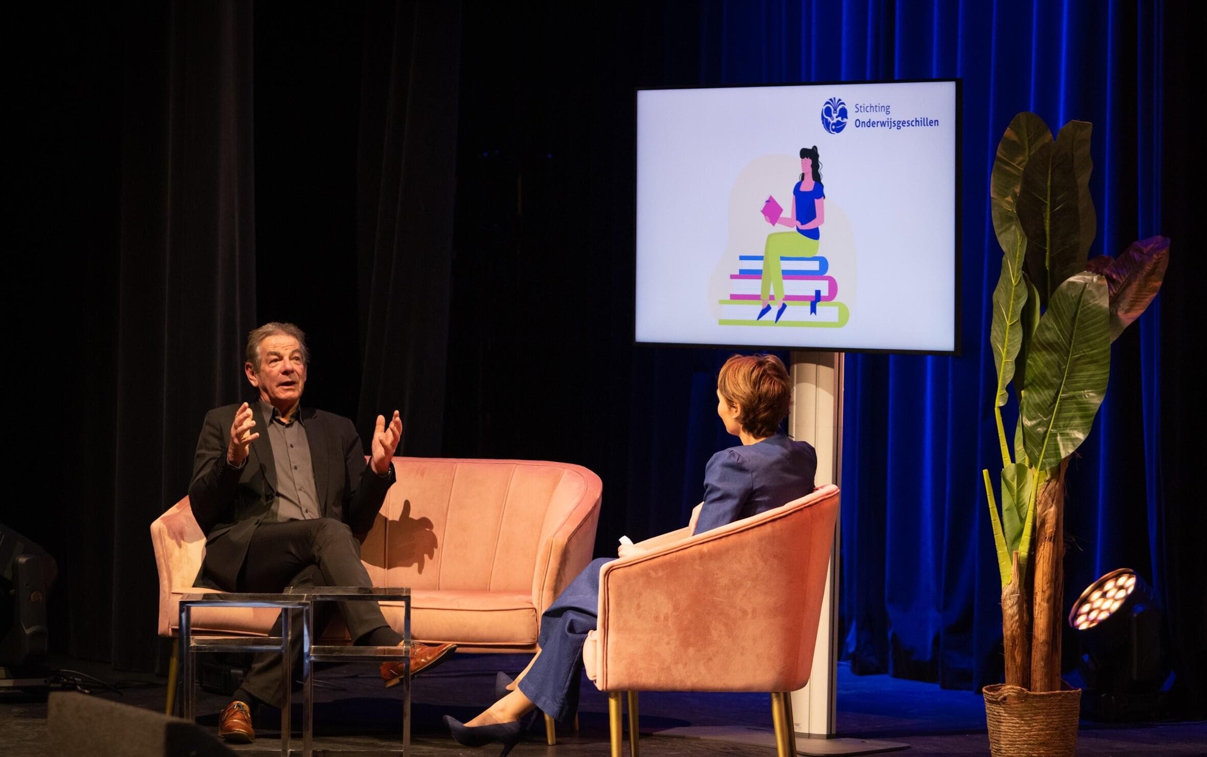 Keynote spreker Abdelkader Benali sprak over zijn persoonlijke ervaringen als middelbare scholier met de medezeggenschap, de nut en noodzaak van inspraak en kansengelijkheid in het onderwijs.